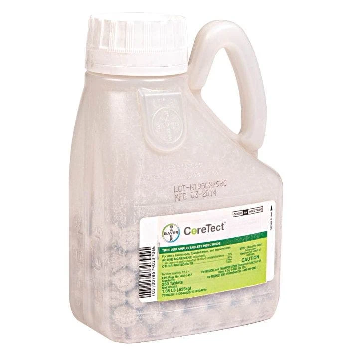 Bayer Coretech Tree and Shrub Insecticide Tablets provide residual control of more than 20 species of piercing, sucking, and chewing insects. Some of the insects it controls include adelgids, aphids, adult Japanese beetles, mealybugs, sawfly larvae, soft scales, and whiteflies.