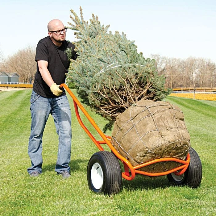 The open back top design reduces the risk of damage to tree trunks, while the ball and burlap lift design with rounded nose is designed to make moving trees quick and easy. Additionally, the ring for rope assistance is handy when going up or down a ramp, and the balance of the truck eases the operation.