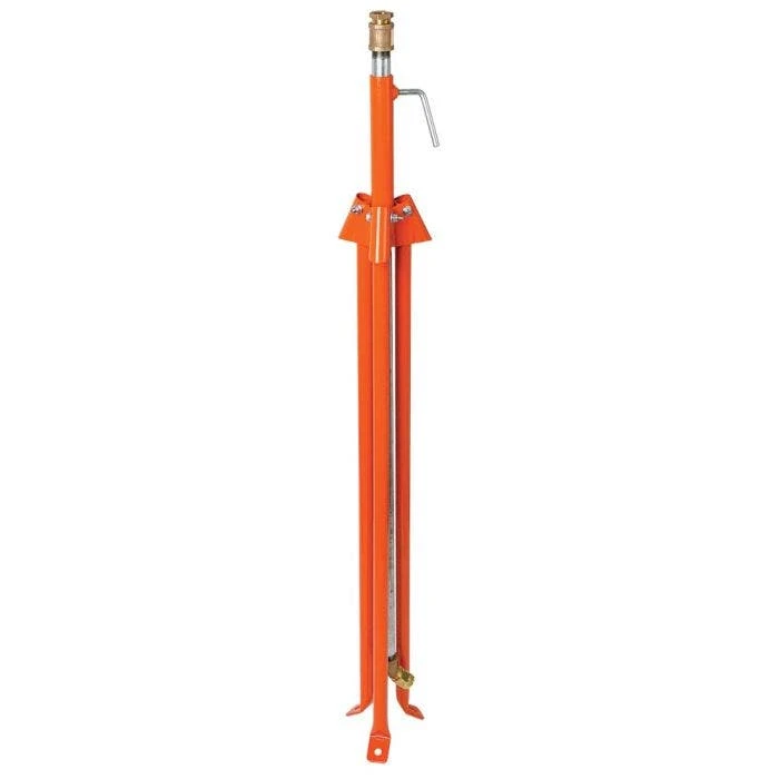 The Leonard Tower is truly a commerical quality sprinkler stand. The riser is 42 inches of 3/4″ galvanized water pipe, not lightweight bendable aluminum. The legs are made out of 14 gauge steel tube, and quickly slide out for setup and easily collapse for transport or storage.