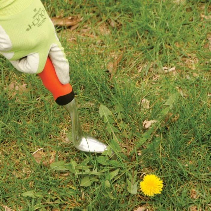 Forked weeders like the Leonard Weeder Cast Aluminum w/ Gel Grip are designed to uproot weeds like dandelions. The forked shape of the tool allows gardeners to get to the base of the weed, making it easier to remove the entire weed from the soil. Additionally, the Leonard Weeder’s one-piece construction and solid aluminum material make it sturdy enough to handle tough soil types and heavy use.