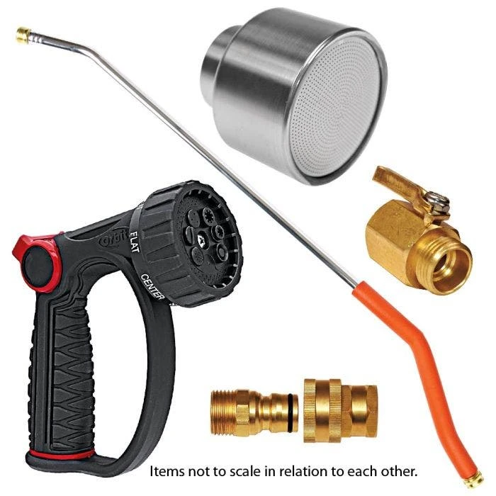 Want to be able to switch between the Contractor Turret Nozzle and the Watering Wand with ease? That’s what the kit is for. Take the kit’s Watering Wand, screw the Stainless Steel Watering Nozzle on the male end, add the Heavy Duty Brass Shut Off Valve to the female end.
